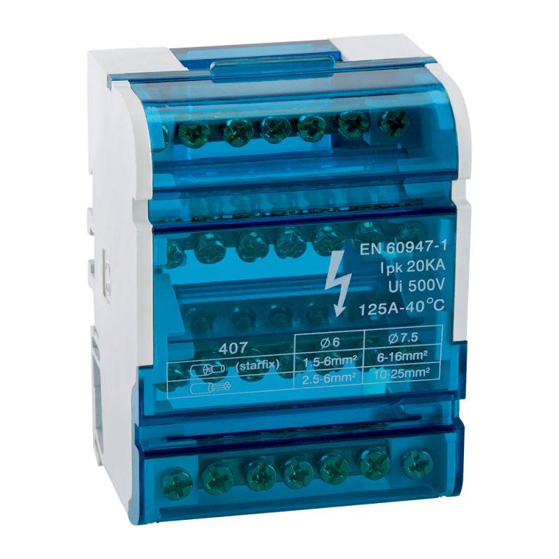 Шины нулевые в корпусе с креплением на DIN-рейку служат для электрического и механического соединения проводников в цепях переменного и постоянного тока с номинальным напряжением до 400 В. Шины применяются в электрощитах для подсоединения нулевых рабочих и нулевых защитных проводников. Номинальный ток In (А): 100