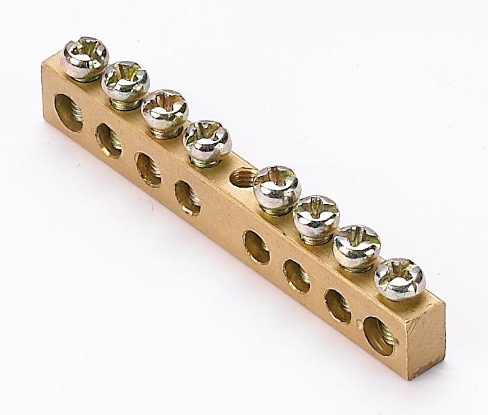 Шина нулевая серии ШН-101 Dekraft; исполнение – колодка на 8 зажимов; сечение - 6х9 мм; длина – 64 мм; максимальный ток – 100 А; материал – высококачественная электротехническая бронза; крепёж - по центру; кол-во в упаковке – 10 шт. Нулевая шина позволяет создать сразу несколько точек подключения нагрузок от общего ввода к нулевому проводнику, обеспечить неразрывность цепи на участке от заземления до конкретной нагрузки, а также выполнить разделение защитного и рабочего нулевых проводников.