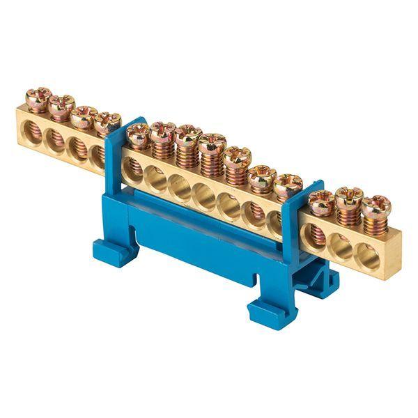 Шина нулевая N 6х9 14 отверстий синий изолятор тип "Стойка" на DIN-рейку латунь PROxima EKF sn0-63-14-sb