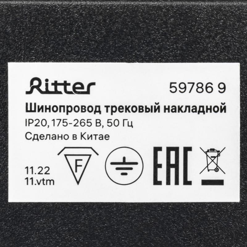 Шинопровод трековый накладной 1ф ARTLINE с питанием и заглушкой 2м алюм./медь с держателями с пластиковой планкой черн. Ritter 59786 9