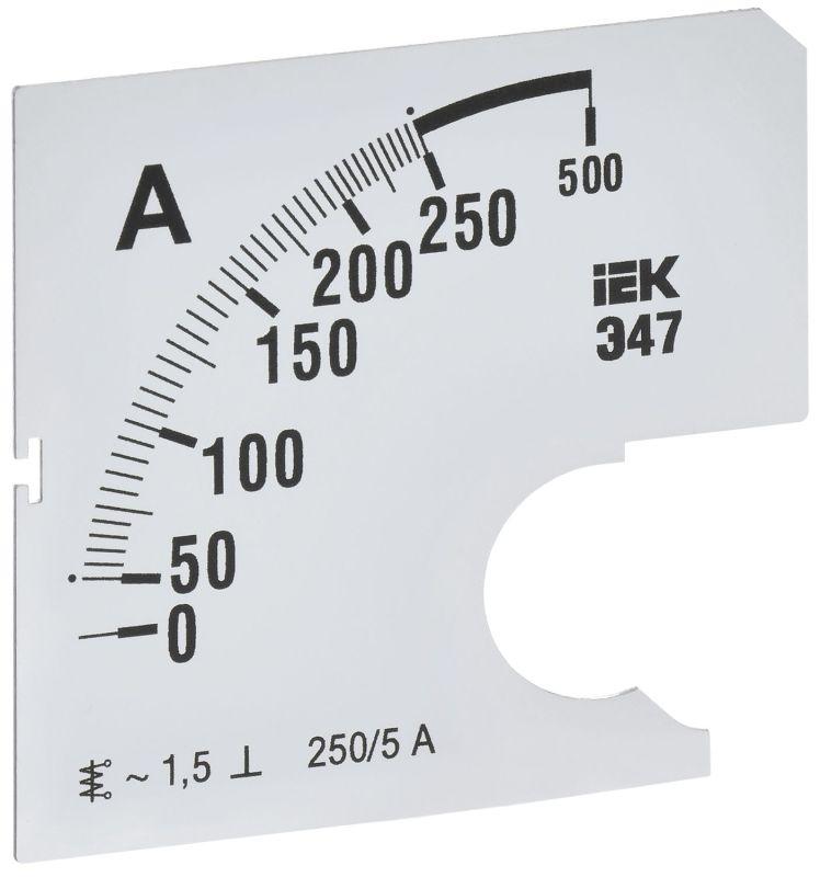 Шкала сменная для амперметра Э47 250/5А-1.5 72х72мм IEK IPA10D-SC-0250