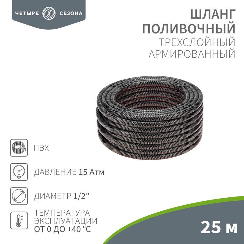Шланг предназначен для полива растений и почвы на садово-огородных участках. Изготовлен из трехслойного высококачественного ПВХ, благодаря чему обладает высокой прочностью и устойчивостью к образованию изломов. Отличается гибкостью и не перекручивается при эксплуатации. Не токсичен. Диаметр шланга – 13 мм 1/2", длина – 25 м. Максимальное давление составляет 15 Атм. Диапазон рабочих температур варьируется от 0 до +40 С.
