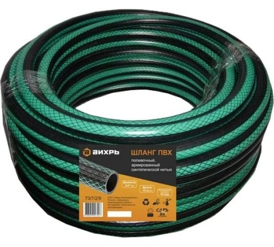 Шланг поливочный ПВХ трехслойн. армир. 3/4 15м зел. Вихрь 73/7/2/9