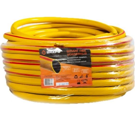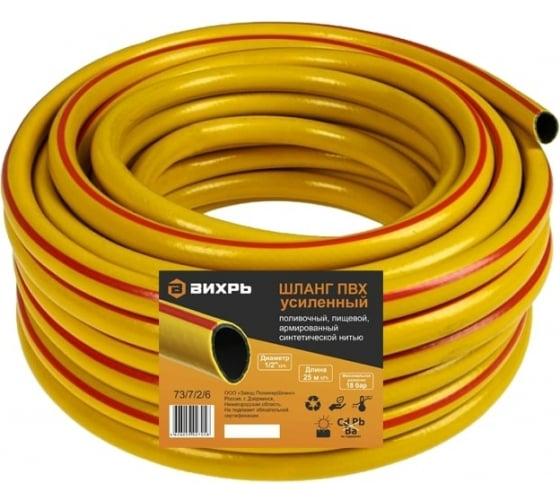 Шланг поливочный ПВХ усиленный пищевой трехслойн. армир. 1/2 25м желт. Вихрь 73/7/2/6