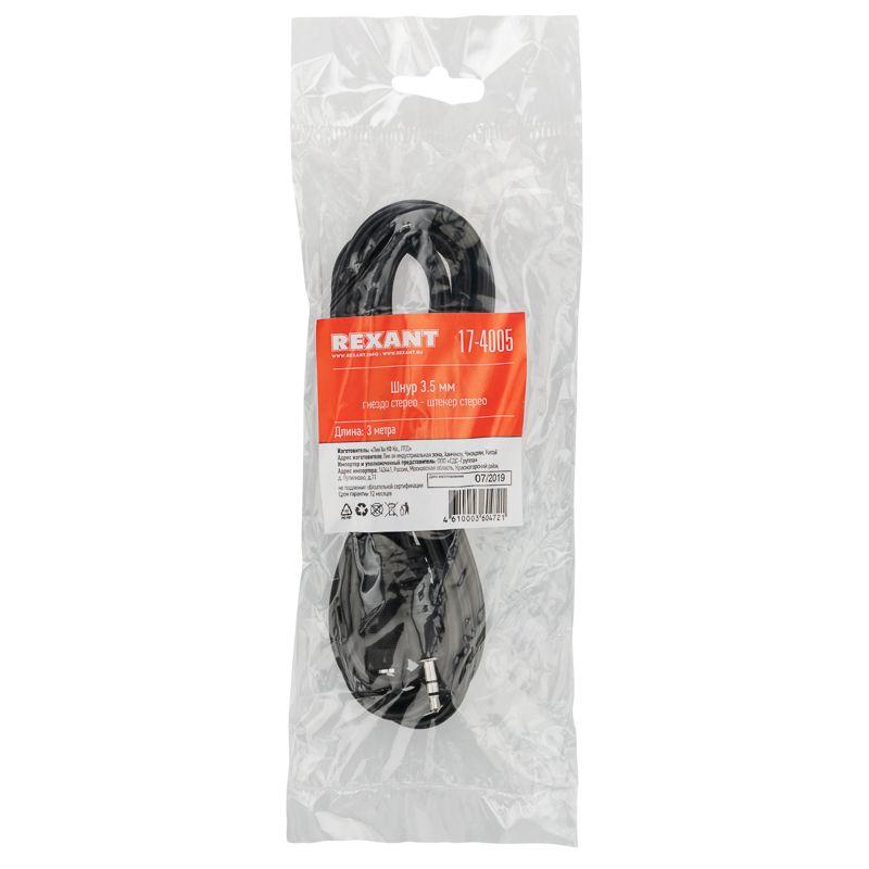 Шнур REXANT предназначен для передачи аналогового аудиосигнала и широко применяется в любых акустических системах. Служит для надежного и качественного соединения домашней и профессиональной аудиоаппаратуры, имеющей разъемы 3,5 мм стерео: микрофоны, электронные музыкальные инструменты, плееры, усилители звука, телевизоры, акустические системы, видеоприставки, мобильные телефоны и т.д. Зачастую используется как аудиоудлинитель. С одной стороны шнура располагается гнездо разъема 3,5 мм стерео, а с другой — штекер разъема 3,5 мм стерео. Разъемы выполнены из легкого и прочного пластика, контакты – никелированы. Длина шнура – 3,5 м.