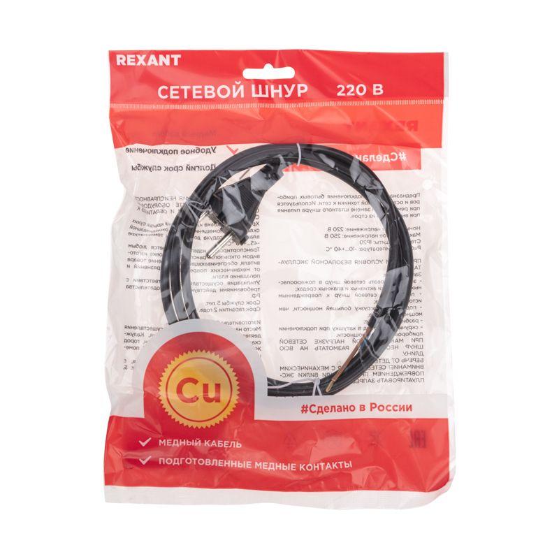 Шнур электрический с прямой вилкой 10А 2200Вт ПВС 2х0.75кв.мм 3м черн. Rexant 11-1303