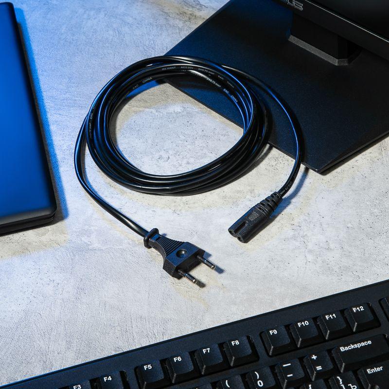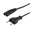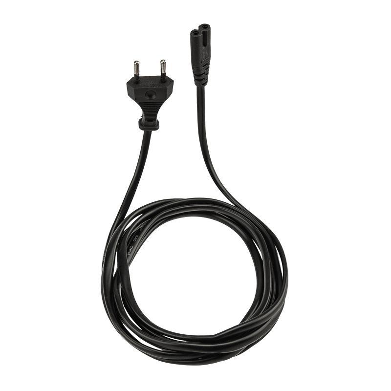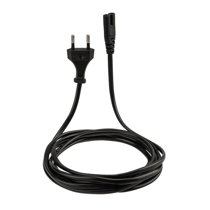 Шнур сетевой СЕЕ 7/16 - разъем IEC 320 C7, 2x0.75 мм2, 3 м REXANT предназначен для подключения к сети переменного тока (AC) с напряжением 220 B аудио- и видеоаппаратуры, источников питания ноутбуков, игровых консолей и других приборов, имеющих штыревой сетевой разъем типа С8 (известен из-за его формы как «восьмерка»). Данный сетевой шнур (IEC cord) состоит из двухжильного провода с сечением проводника 0.75 мм2, с одной стороны литой неразборной вилкой СЕЕ 7/16 и с другой — литым гнездовым неполяризованным разъемом IEC 320 C7. Основные характеристики: Тип вилки:СЕЕ 7/16 Тип разъема: IEC 320 C7 Максимальная сила тока: 5 А Изоляция жил и общая оболочка изготовлена из ПВХ Длина провода: 3 м Шнур имеет многопроволочные жилы, заключенные в эластичную двойную изоляцию из ПВХ, что делает его максимально гибким и увеличивает срок эксплуатации изделия.