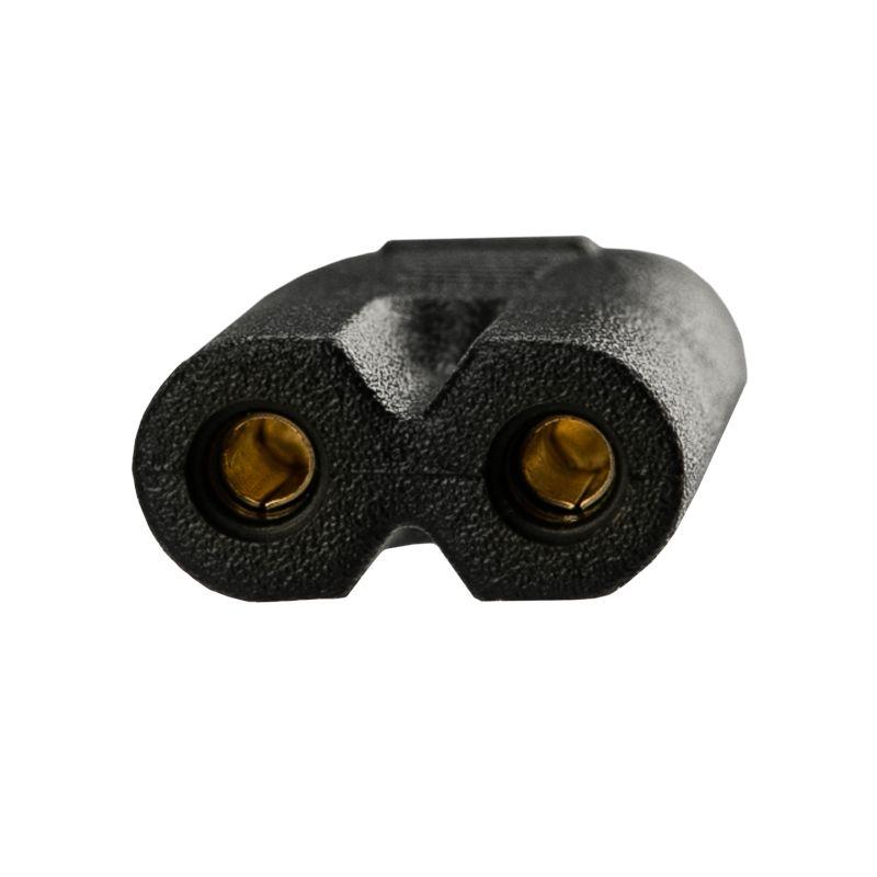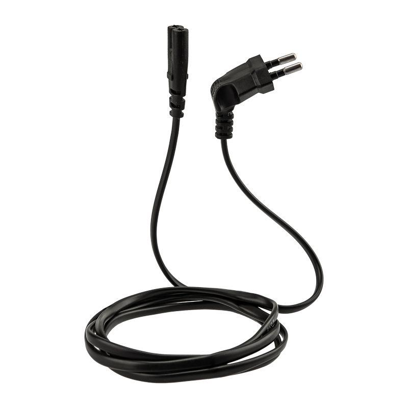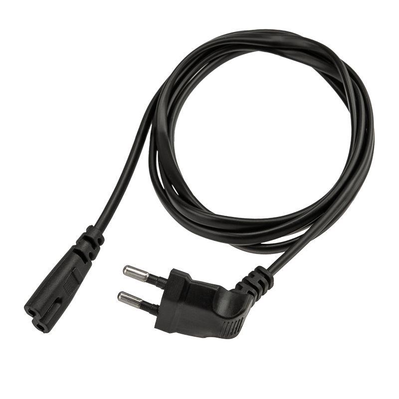 Шнур сетевой СЕЕ 7/16 - IEC 320 C7 2x0.5 мм2 1.5 м REXANT предназначен для подключения к сети переменного тока (AC) с напряжением 220 B аудио- и видеоаппаратуры, источников питания ноутбуков, игровых консолей и других приборов, имеющих штыревой сетевой разъем типа С8 (известен из-за его формы как «восьмерка»). Данный сетевой шнур (IEC cord) состоит из двухжильного провода с сечением проводника 0.5 мм2, с одной стороны угловой литой вилкой СЕЕ 7/16 и с другой — литого гнездового неполяризованного разъема типа IEC 320 C7. Основные характеристики: Тип вилки: угловая СЕЕ 7/16 Тип разъема: IEC 320 C7 Максимальная сила тока: 6 А Изоляция жил и общая оболочка изготовлена из ПВХ Длина провода: 1.5 м Такой шнур удобен при подключении электрооборудования в труднодоступных местах, либо когда подключаемое устройство нужно разместить в непосредственной близости к чему-либо. Шнур имеет многопроволочные жилы, заключенные в эластичную двойную изоляцию из ПВХ, что делает его максимально гибким и увеличивает срок эксплуатации изделия.