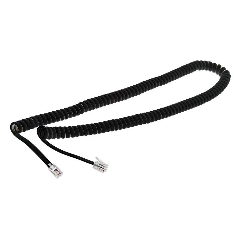 Шнур предназначен для подключения телефонных трубок к телефонным аппаратам. Применяется в радиостанциях, медицинской технике и в других областях, где необходим шнур с переменной рабочей длиной. Изделие представляет собой витой кабель, на концах которого располагаются опрессованные разъемы RJ-10 (4P4C). Контакты разъемов покрыты слоем золота по технологии вакуумного напыления, что обеспечивает улучшенную пропускную способность сигнала. Жилы и общая оболочка изготовлены из ПВХ. Материал отличается износостойкостью и долгим сроком службы. Двойная изоляция надежно защищает провод от механических повреждений. Витая конструкция кабеля обеспечивает удобное изменение длины провода, а также предотвращает перегибы и спутывание как в развернутом, так и в собранном виде. Рабочая температура шнура –20...+50 ?. Длина провода составляет 7 м, цвет – черный.
