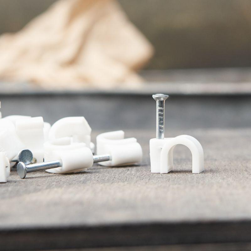 Круглый крепеж 6 мм с гвоздем предназначен для фиксации круглого кабеля к деревянной поверхности. Такой крепеж будет особенно полезен для использования на даче или в частном деревянном доме. Представляет собой дугообразную скобу белого цвета, выполненную из качественного пластика, с гвоздем в специальном отверстии. Скоба используется для мгновенного и надежного крепления проводов и кабелей к поверхностям стен, несущих конструкций и потолков. Гвоздь выполнен из закаленной стали, что позволяет закрепить его даже в плотной и твердой древесине без риска погнуть или сломать.