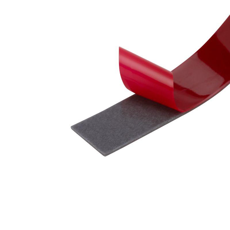 Двухсторонняя клейкая лента на основе акрила предназначена для склеивания поверхностей, которые требуют высокой прочности фиксации. Надежно соединяется с поверхностями из стекла, металла, пластика и дерева. Акриловая основа отличается высокой адгезией, поэтому хорошо фиксирует материалы на длительный срок. Максимальная величина адгезии достигается через 20-24 часа после склеивания предметов. Лента на основе акрила достаточно гибкая для того, чтобы склеивать предметы с неровной поверхностью. Устойчива к ультрафиолетовому излучению, влаге и температурным колебаниям, поэтому подходит для использования в местах, где может быть подвержена воздействию солнца и воды.