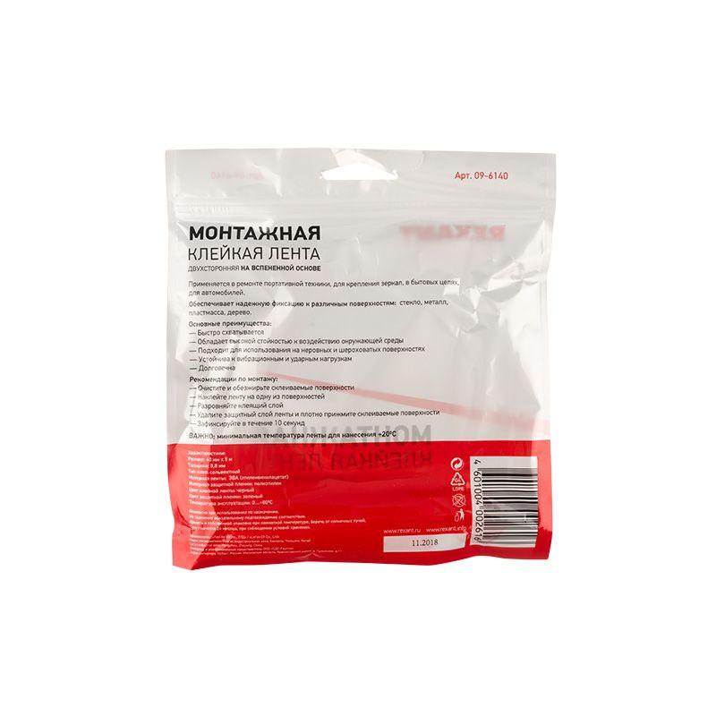 Скотч двухсторонний 40ммх5м зел. на черн. основе Rexant 09-6140