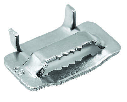 Скрепа для ленты (бугель) NB 20 (уп.100шт) NILED 12201471 – крепежное изделие, такелажная скрепа для СИП. Изготовлена из нержавеющей стали. Применяется для фиксации ленты из нержавеющей стали, шириной 10 мм на анкерных опорах.