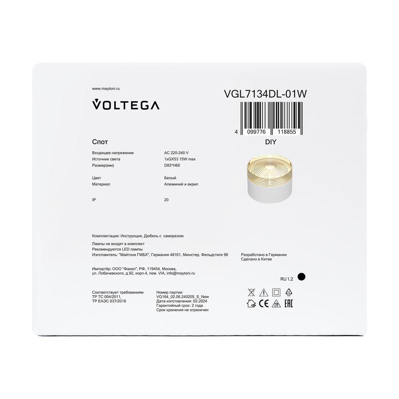 Спот Zoro GX53х1 15Вт IP20 Voltega VGL7134DL-01W