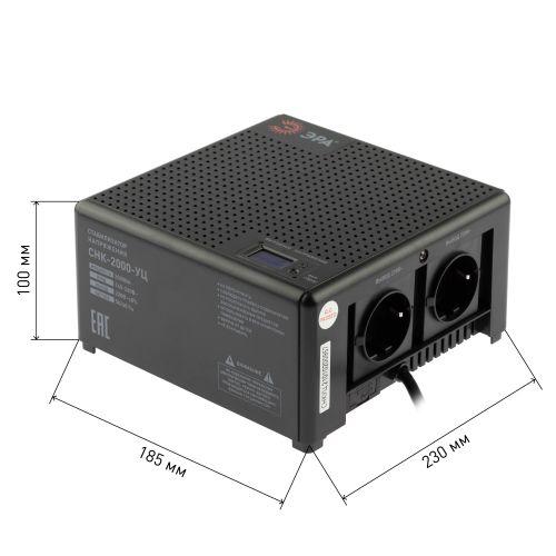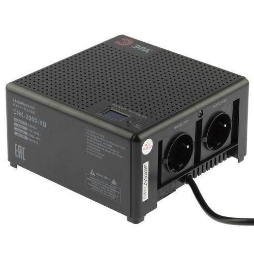 Стабилизатор напряжения компактный однофазный релейный цвет чёрный модели CНК-2000-УЦ. Номинальные характеристики (полная мощность / диапазон входного напряжения): 2000ВА 140-260В . Предназначен для поддержания стабильного однофазного напряжения питания бытовых приборов при отклонениях значений сетевого напряжения. Выбирая стабилизатор, нужно знать, какое электрооборудование будет к нему подключено: один прибор, группу приборов (наиболее чувствительных к перепадам напряжения в сети) либо вся домашняя (офисная) техника. Затем необходимо рассчитать суммарную мощность защищаемых электропотребителей. Основное условие выбора мощности стабилизатора напряжения - суммарная мощность подключаемой к нему нагрузки не должна превышать полной мощности самого стабилизатора (в противном случае автоматика стабилизатора будет их просто отключать). Точные значения мощности можно узнать из паспортных данных Вашего конкретного потребителя. Стабилизатор подбирается с запасом в 25-30% к его полной мощности.