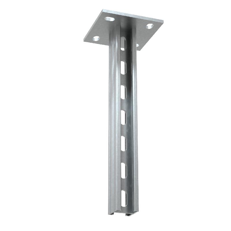 Страт-стойка двойная усиленная используется для потолочного или напольного крепления кабельной трассы. Элемент выполнен из двух сваренных между собой С-образных профилей и опорной пластины с отверстиями для крепежа. Изделие выполнено из стали оцинкованной электрохимическим способом. Предназначено для применения в местах предпочтительно с сухим климатом, внутри помещений и в слабоагрессивных средах, в соответствии с ГОСТ 15150-69. Элемент эффективен и в системе промышленного интегрированного фальшпола. Создавайте комплексные решения для кабельных трасс, ускоряя процесс развития монтажной системы - без применения сварочных работ, при помощи специальных канальных гаек.