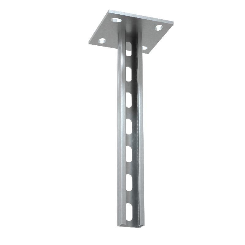 Страт-стойка усиленная используется для потолочного или напольного крепления кабельной трассы. Элемент выполнен из С-образного профиля и опорной пластины с отверстиями для крепежа. Перфорация обеспечивает удобный монтаж консолей или кабельных полок на любой высоте. Изделие выполнено из стали оцинкованной электрохимическим способом. Предназначено для применения в местах предпочтительно с сухим климатом, внутри помещений и в слабоагрессивных средах, в соответствии с ГОСТ 15150-69. Элемент эффективен и в системе промышленного интегрированного фальшпола. Создавайте комплексные решения для кабельных трасс, ускоряя процесс развития монтажной системы - без применения сварочных работ, при помощи специальных канальных гаек.
