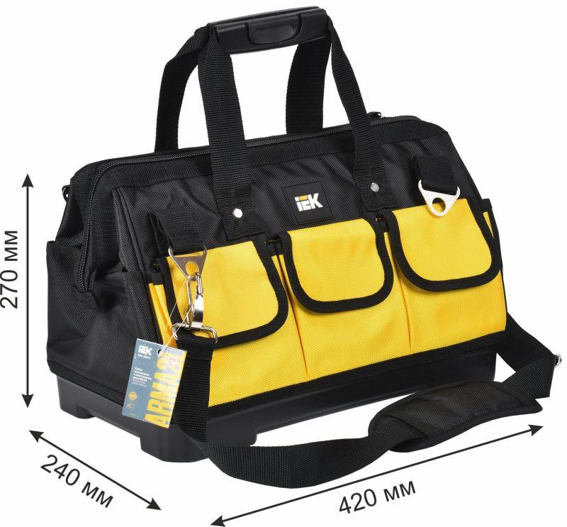 Сумка монтажника с пластиковым дном BG-03 предназначена для удобной и безопасной транспортировки инструментов при выездных работах. Сумка выполнена из ткани полиэстер 1680D Оксфорд с PVC-пропиткой. Дно из ударопрочного пластика с высокими бортиками защищает сумку от промокания и загрязнения. Пластиковые ручки и наплечник с анатомической вставкой на ремне.