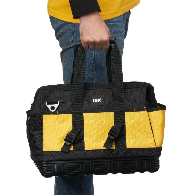 Сумка монтажника с резиновым дном BG-01 предназначена для удобной и безопасной транспортировки инструментов при выездных работах. Сумка выполнена из ткани полиэстер 1680D Оксфорд с PVC-пропиткой. Прорезиненное дно с высокими бортиками защищает сумку от промокания и загрязнения. Резиновые ручки и наплечник с анатомической вставкой.