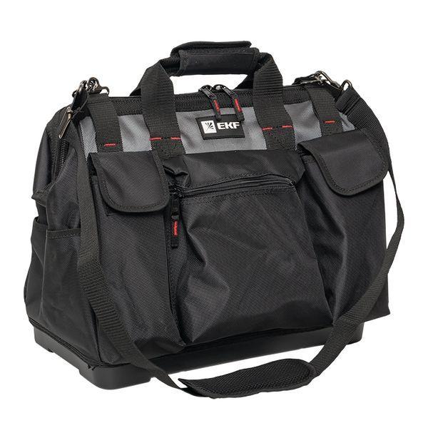 Сумка монтажника универсальная с жестким дном С-01 для хранения и переноски инструмента. Особенности: 1. Выполнена из ткани 1680D «Оксфорд», состав 100% полиэстер. 2. Унифицированный со всеми моделями ремень с мягким нескользящим наплечником не скатывается с плеча при переноске. 3. Узловые места (ручки) имеют дополнительную прострочку. Можно переносить больше инструмента. 4. Усиленная молния с прочными звеньями – гарантия долгой службы. 5. Внешние карманы для безопасной переноски мультиметров и токовых клещей. 6. Удобная инновационная организация внутреннего пространства под любой тип инструмента. 7. Жесткое масло- и водостойкое дно усиленной конструкции.