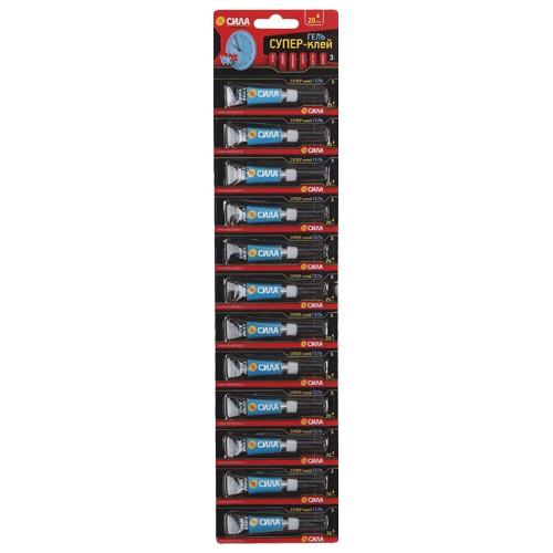 Супер-клей ГЕЛЬ СИЛА, идеально подходит для быстрого и эффективного ремонта различных предметов мебели, интерьера, обуви и т.д. Накрепко схватывает дерево, кожу, резину, керамику, фарфор и пластик, при этом супер клеи экономично расходуются и высыхают за несколько секунд. Не растекается и не капает.