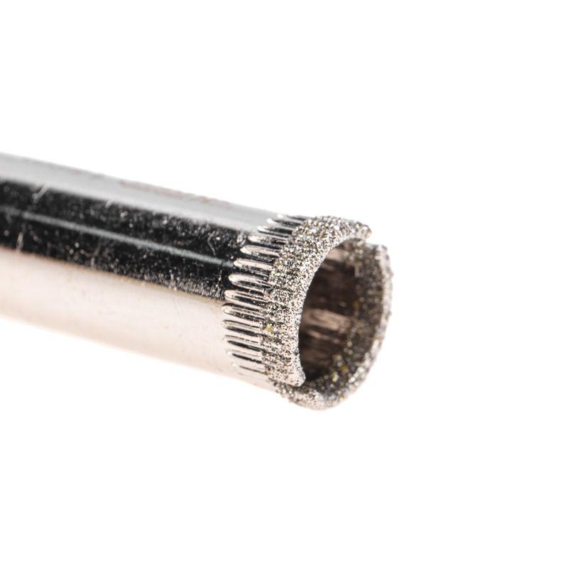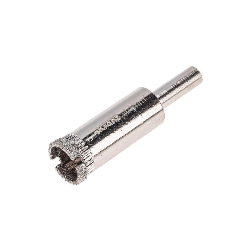 Алмазное сверло диаметром 14 мм предназначено для работ с керамогранитом, керамикой и стеклом. Представляет собой трубчатое сверло, выполненное в виде полого цилиндра. Используется совместно с дрелями или шуруповертами. Цилиндрический хвостовик способствует надежному креплению сверла в патроне. Режущая кромка покрыта промышленными алмазами высокой твердости, обеспечивающими точное и чистое сверление отверстий без трещин и сколов на поверхности материала. Для предотвращения перегрева в процессе сверления алмазные сверла необходимо постоянно охлаждать водой. При перегреве алмазы легко отделяются от основы, поэтому сверлить необходимо на малых оборотах.