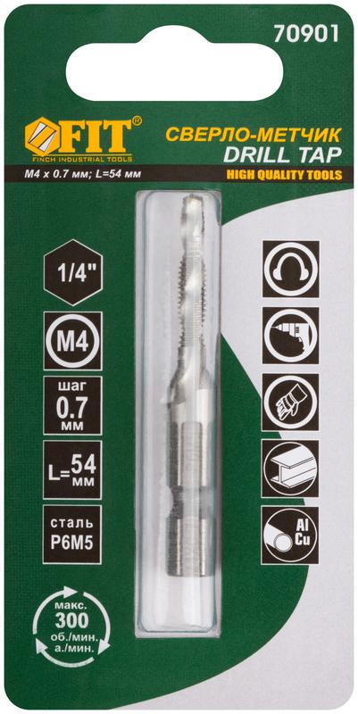 Сверло-Метчик комбинированное метрическое быстрорежущая (HSS) сталь Р6М5 М4х0.7мм 16/54мм FIT 70901