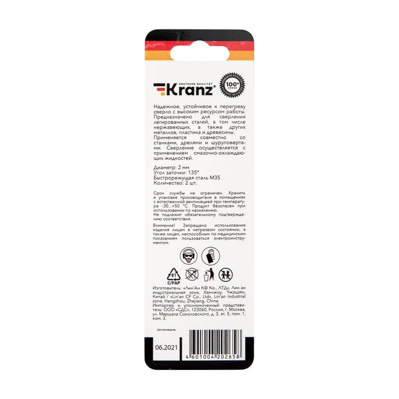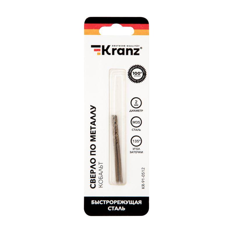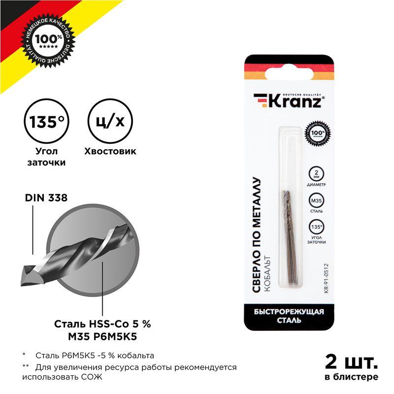 Сверло по металлу 2х49х24мм "Кобальт" (сталь HSS-Co 5% M35 P6M5K5) DIN 338 (блист.2шт) Kranz KR-91-0512