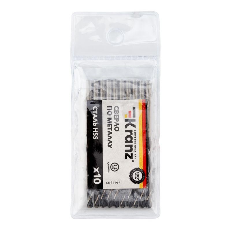Сверло по металлу 3.2мм HSS DIN 338 (уп.10шт) Kranz KR-91-0611