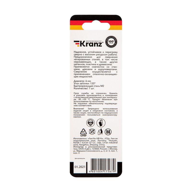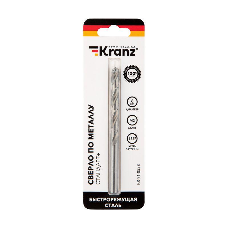 Сверло по металлу 6мм "Стандарт+" (P6M5 M-2) DIN 338 (блист.1шт) Kranz KR-91-0528