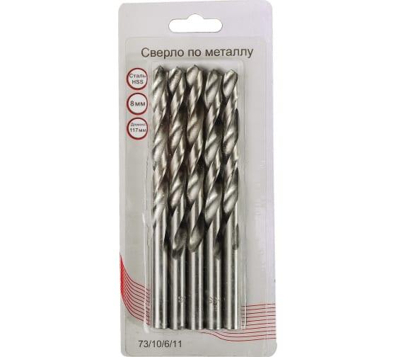 Сверло по металлу 8мм HSS (блист.5шт) Вихрь 73/10/6/11
