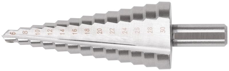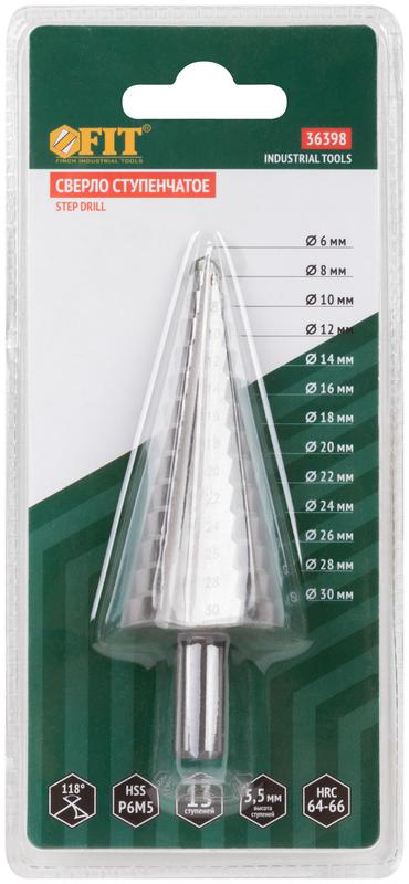 Ступенчатое сверло FIT IT предназначено для сверления и рассверливания отверстий в листовых материалах (сталь, цветные металлы, пластик). Сверло изготовлено из полированной быстрорежущей (HSS) стали Р6М5, что обеспечивает его долговечность и надежность в использовании. Сверла обладают высокой термостойкостью и износоустойчивостью, что гарантирует им увеличенный ресурс. Конструкция сверла обеспечивает улучшенный отвод отходов сверления.