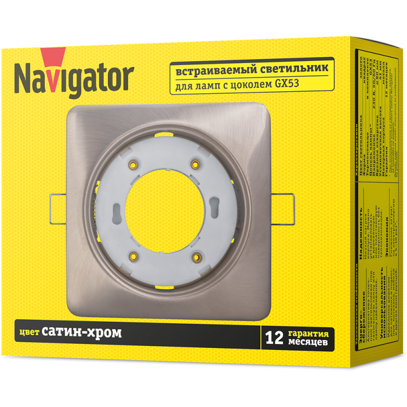 Светильник 93 022 NGX-S2-004-GX53 квадрат сатин/хром.Navigator 93022