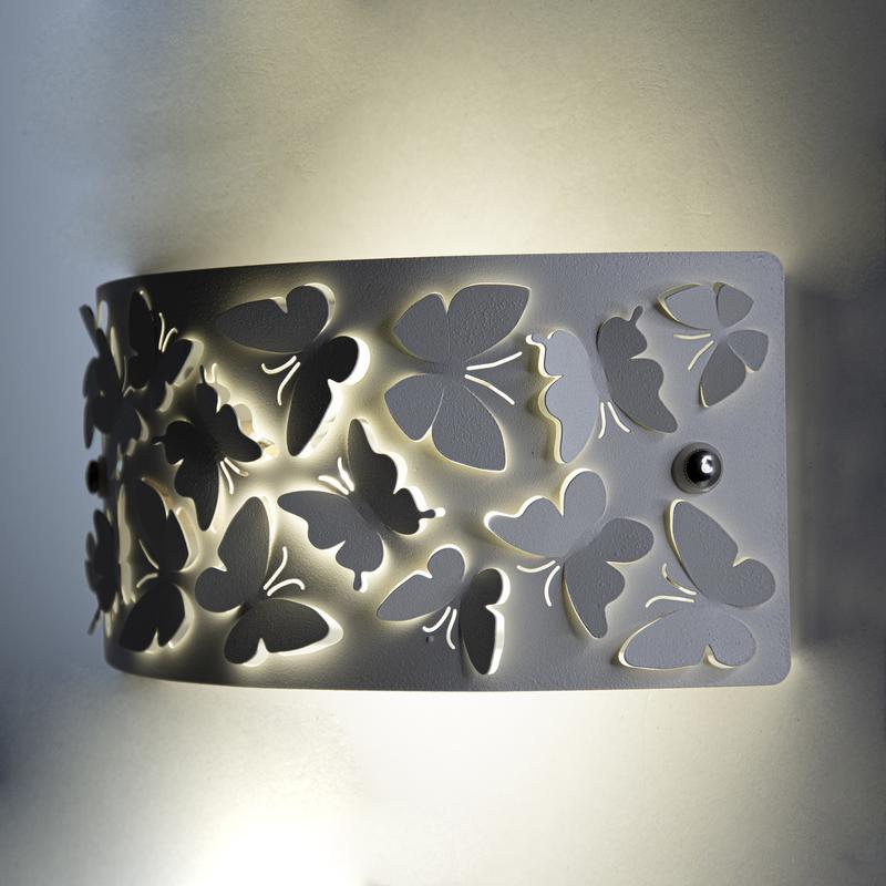 Настенный светильник серии Эффект отлично подойдет для комнаты, оформленной в современном стиле. Резные элементы плафона в форме бабочек подчеркивают воздушность изделия, легко вписываются и в интерьер детской комнаты. Производитель рекомендует использовать лампу накаливания с цоколем E27 мощностью не более 60вт, а также светодиодные или энергосберегающие лампы. Для создания максимального декоративного эффекта можно использовать светодиодные лампочки RGB. Габаритный размер изделия 250x120x72 мм. Рекомендуемая площадь освещения до 3м?. Подключить питание 220 В можно непосредственно к контактам патрона в светильнике либо используя провод с вилкой и выключателем (входит в комплект) Лампочка в комплект не входит.