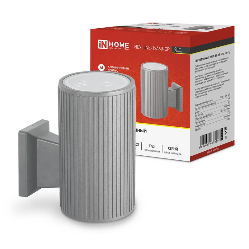 Оригинальные уличные светильники LINE-1хA60-GR от ТМ In Home предназначены для работы со светодиодными лампами E27. Линейка представлена в двух цветах (черный и серый) в одностороннем исполнении. Светильники предназначены для фасадной подсветки загородных домов, коттеджей, ресторанов, инсталляций. Благодаря современному дизайну, лаконичной форме и нестандартному световому эффекту, они станут идеальным решением для акцентного освещения общественных зданий и частных загородных коттеджей. Светильник имеет разборный корпус для установки светодиодной лампы. Корпус защищен специальной прокладкой, которая предотвращает проникновение влаги и защищает от запотевания. Основные характеристики светильника: • Предназначен под лампы E27 • Рассеиватель – стекло • Форма корпуса – цилиндр • Форматы светильников – односторонний • Цвета корпуса – черный и серый • Температурный диапазон -20° +40°C • Степень защиты IP65 • Простой монтаж и установка