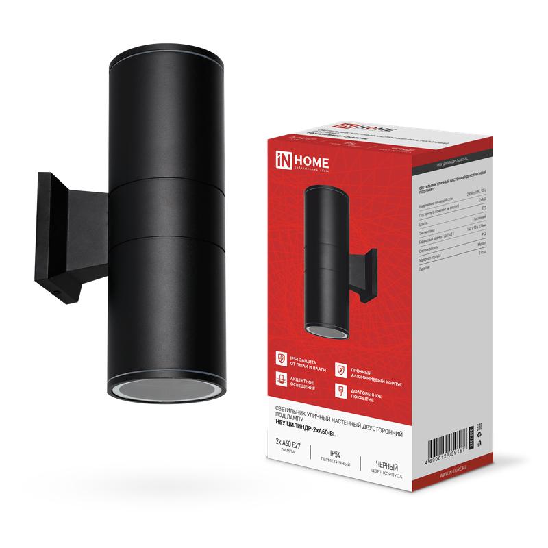 Светильник НБУ ЦИЛИНДР-2хA60-BL IP54 уличный настен. двусторон. алюм. черн. IN HOME 4690612059167