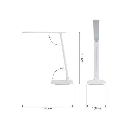 Настольный светильник ЭРА NLED-462-10W-W со светодиодами (LED) в качестве источников света. Оснащен сенсорным управлением, есть регулировка яркости освещения - 3 уровня. Складная конструкция для оптимального хранения.