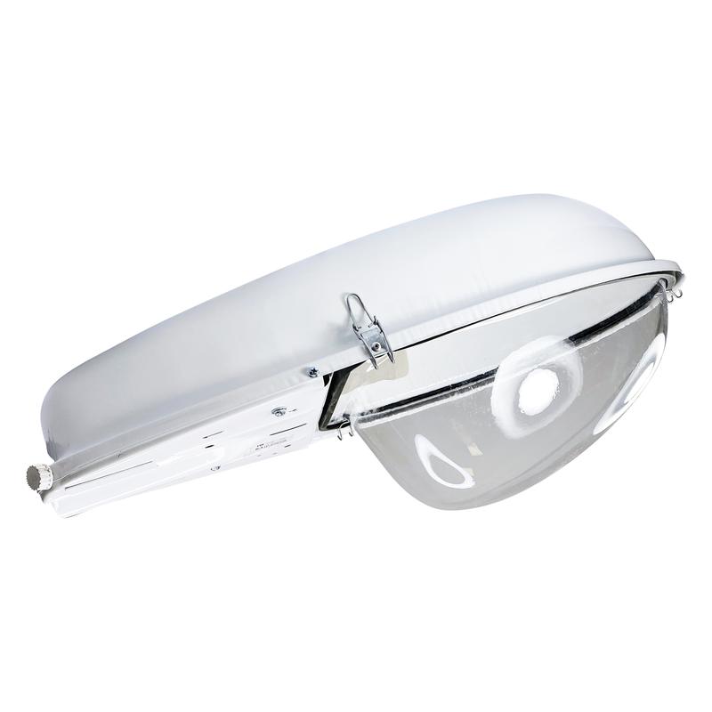 Консольный светильник для освещения улиц, дорог, площадей и других открытых пространств. Рекомендуется устанавливать на высоте 6…12 м под углом 15-20 град к горизонту, диаметр трубы кронштейна 48 мм. Корпус-отражатель изготовлен из стали, покрашен порошковой краской. Рассеиватель выполнен из светостабилизированного поликарбоната. Патрон Е27. Рекомендуемый источник света лампа ДРЛ 125.