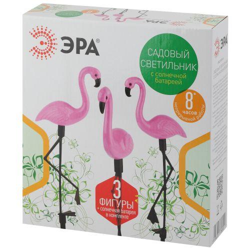 Беспроводной led светильник ERADF008-06 Фламинго станет чудесным украшением вашего сада. Удобная конструкция и упрощенная сборка позволят Вам разместить подсветку около клумбы, украсить пруд, территорию рядом с бассейном, необычно подсветить тропинку или вход в террасу. 3 пластиковые фигурки высотой 52,5 см крепятся на штекер и с легкостью втыкаются в землю. Светильник функционирует на солнечной батарее. Такой способ получения энергии является максимально экологичным, энергоемким, а также бесшумным. Питание происходит во включенном режиме, днем. С наступлением ночи фламинго загораются. Животики и головки фигурок заливаются спокойным белым светом и освещают территорию вокруг себя, создавая уютную атмосферу. Подсветка Вашего сада может длиться непрерывно в течение 8 часов. Высокая степень защиты от пыли и влаги позволяет оставлять светильник на улице даже во время дождя. Обращаем Ваше внимание, что перед использованием фигурки её необходимо включить и зарядить. Светильник заряжается в течение всего светового дня. Декоративный светильник от компании ЭРА чудесный вариант для преображения Вашего сада.