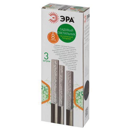 Беспроводной led светильник ERASF024-21 "Пузырьки" станет эффектным украшением вашего сада. В комплект входит 3 светильника, соединенных между собой. Общая длина в 144 см позволит Вам разместить конструкцию в саду, украсить декоративный пруд или бассейн, необычно подсветить дорожку или придомовую территорию. Фигурки из ударопрочного пластика высотой 38 см с легкостью вставляются в землю. Садовый светильник функционирует на солнечной батарее. Такой вид получения энергии является наиболее экологичным, энергоемким, а также бесшумным. Питание происходит во включенном режиме, днем. Самое интересное начинается после захода солнца. Пузырьки начинают медленно переливаться желтым, зеленым и оранжевым цветами. Такое световое шоу будет эффектно смотреться в особо затемненных местах участка. Эффект пузырьков придает светильнику особой динамики. Работа от солнечной батареи рассчитана 8 часов непрерывной работы. Высокий уровень пыле и влагозащиты позволяет оставлять светильник на улице даже во время дождя. Обращаем Ваше внимание, что перед использованием фигурки её необходимо включить и зарядить. Светильник заряжается в течение всего светового дня. Декоративный светодиодный светильник от бренда ЭРА лучший вариант для украшения Вашей территории.
