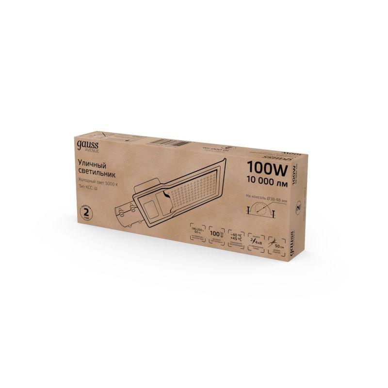 Светильник светодиодный Avenue 100Вт 5000К IP65 10000лм 190-250В 420х160х57мм ДКУ уличный консольный КСС Ш черн. GAUSS 629534300