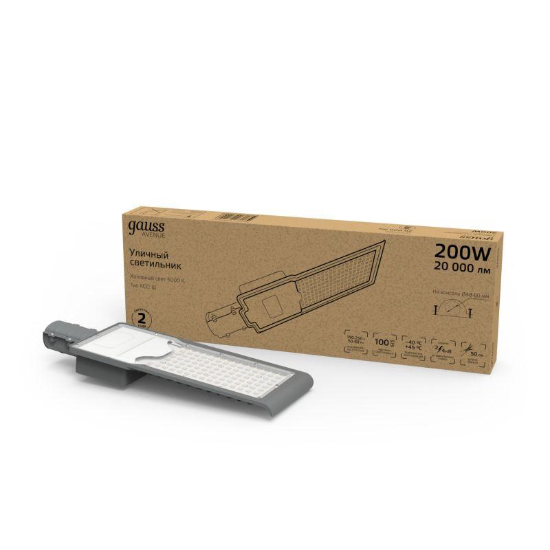 Светильник светодиодный Avenue 200Вт 5000К IP65 20 000лм 190-250В 600х200х70мм ДКУ уличный консольный КСС "Ш" GAUSS 629534302