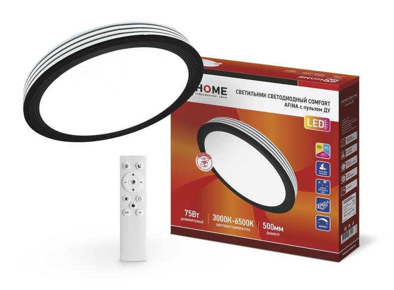 Светильник светодиодный COMFORT AFINA 75Вт 3000-6500К 6000лм 230В 490х90мм с пультом ДУ IN HOME 4690612035147