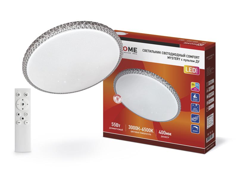 Мерцающий рассеиватель светильника MYSTERY, комбинированный с «хрустальной» огранкой его канта, создаёт загадочную атмосферу в интерьере. Пульт дистанционного управления поможет отрегулировать яркость и температуру освещения под ваше настроение, время суток или под конкретные задачи. Одним нажатием кнопки вы сможете сменить холодный контрастный свет (6500К) на уютный теплый (3000К), или снизить яркость до мягкого расслабляющего свечения в энергосберегающем режиме ночника (5% освещенности). Холодный дневной свет создает яркое контрастное освещение, удобное для работы с мелкими предметами и деталями. Теплый свет добавит интерьеру уюта и будет способствовать расслаблению в период вечернего отдыха. Используйте таймер отключения, и через 30 минут светильник выключится сам. Номинальный срок службы – не менее 30 000 часов, гарантия 2 года.