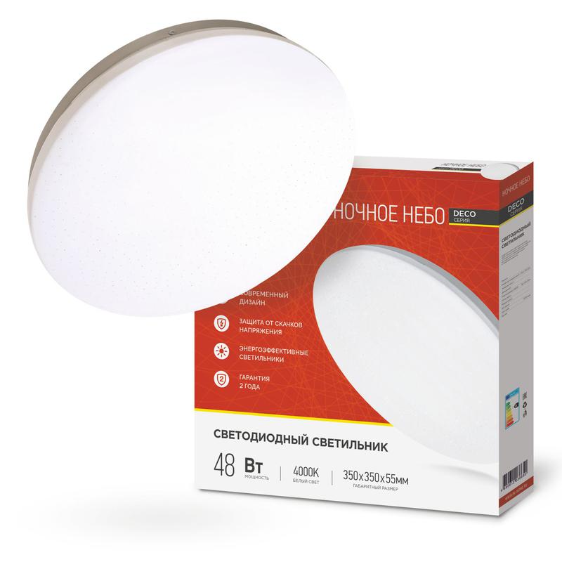 Лаконичность форм и простота линий светильника НОЧНОЕ НЕБО от ТМ In Home с эффектом «звездного неба» на поверхности рассеивателя понравятся любителям классических и современных интерьеров. При минимальных затратах электроэнергии светильник обеспечивает яркий, но комфортный для глаз свет и гарантирует отсутствие пульсации. Разнообразие модификаций поможет создать оптимальный вариант интерьерного освещения. Линейка светильников НОЧНОЕ НЕБО DECO In Home представлена в нескольких вариантах размеров и мощностей (от 12 Вт до 48 Вт), что позволяет подобрать оптимальный осветительный прибор, в зависимости от конфигурации и габаритов помещения.
