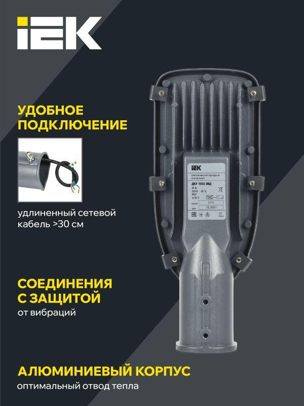 Светильник светодиодный ДКУ 1002-30Д 5000К IP65 уличный консольный сер. IEK LDKU0-1002-030-5000-K03