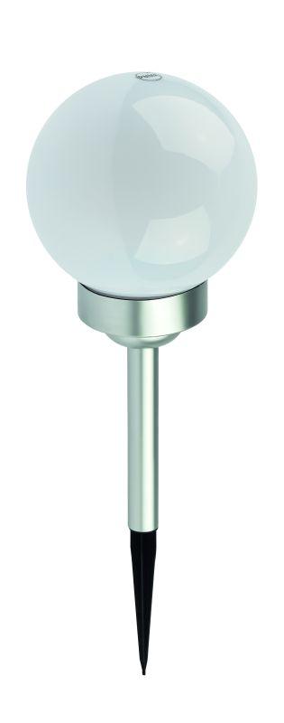 Классическая модель садового светильника в виде сферы. Мягкое свечение холодного белого света послужит прекрасным украшением при оформлении садовых дорожек и клумб.