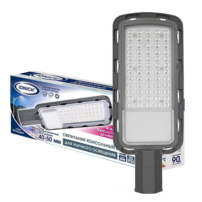 Светильник светодиодный консольный линзованный ДКУ 50Вт 5000К IP65 IONICH 2149