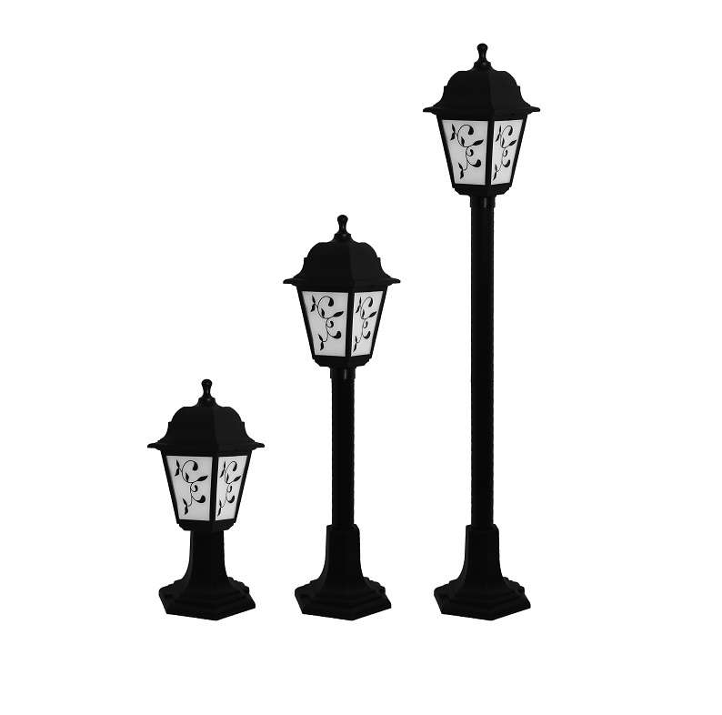 Светильник светодиодный Lousanne 60Вт E27 IP44 с опорой 3 в 1 390-650-960мм пластик. черн. матов. стекло с рисунком Duwi 24146 1