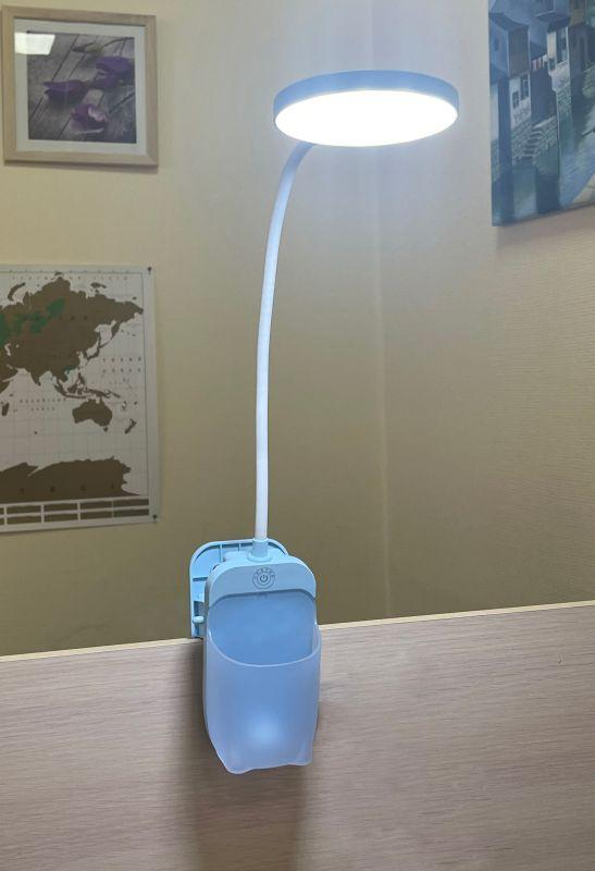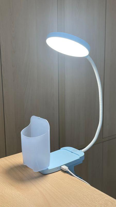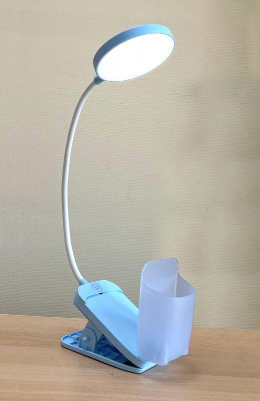 Светодиодные настольные светильники предназначены для освещения индивидуального рабочего пространства на письменном столе. Светильники могут работать как от сети, так и от встроенного аккумулятора при отсутствии сетевого напряжения. ULTRAFLASH UF-751 C13 цвет голубой. Мощность 7Вт. 3 уровня яркости. Смена цветности свечения от 2800 до 6000К, сенсорное управление. Пенал+прищепка+встроенный аккумулятор.